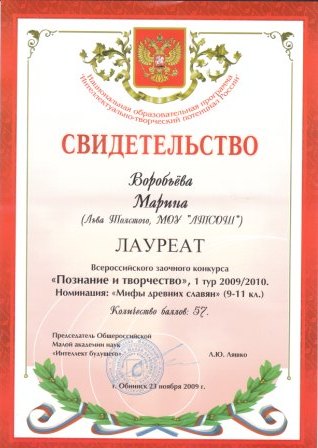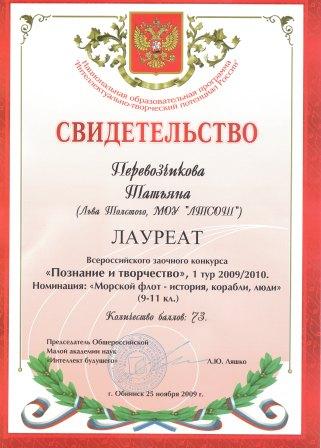 В номинации "Морской флот-история, корабли, люди" Перевозчикова Татьяна Николаевна и в номинации "Мифы древних славян" Воробьева Марина Вячеславовна стали лауреатами конкурсов, руководитель проектов Перевозчикова Г.А.