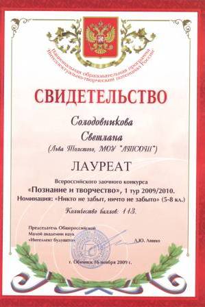 В номинации "Никто не забыт, ничто не забыто" Губанова ЕвгенияСергеевна и Солодовникова Светлана Сергеевна, руководитель проектов Алехина Г.Д., стали лауреатами конкурса.